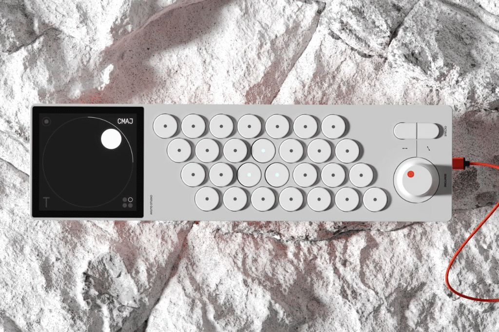 Akuto Studio révolutionne la manière de jouer de la musique à travers le design et les nouvelles technologies, notamment avec son produit La Chord Machine AKT-0.1. Cet instrument de musique interactif est conçu pour explorer les accords et les harmonies de manière intuitive.